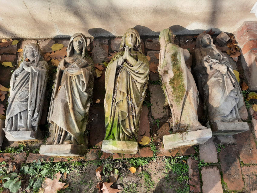 Pál-Simon Kornélia, a Rippl-Rónai Megyei Múzeum muzeológus-művészettörténésze a Sonline.hu-nak nyilatkozva elmondta: vélhetően út menti kereszt alatt lévő szobrok kerültek elő. A kereszteket magánfinanszírozásból állították az utak mentén, ezért fontos volt az megvizsgálni, hogy valaki tett-e feljelentést eltűnésük miatt, azonban kiderült: senki sem kereste az öt nőalakot. A megtalálás helyén semmilyen szakrális épület nem állhatott korábban, így biztosan máshonnan származnak a szobrok – tette hozzá a szakember. – Ezeket szándékoltan gyűjtötték egybe, mind az öt szobor nőalak, úgyhogy valószínűleg a kereszt mellékalakjaként szerepelhettek.