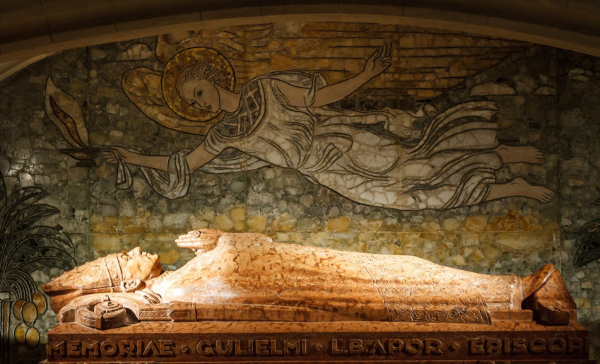 A szentmise végén a főpásztor a koncelebráló atyákkal Apor püspök szarkofágja előtt imádkozott a székesegyház Héderváry-kápolnájában.
