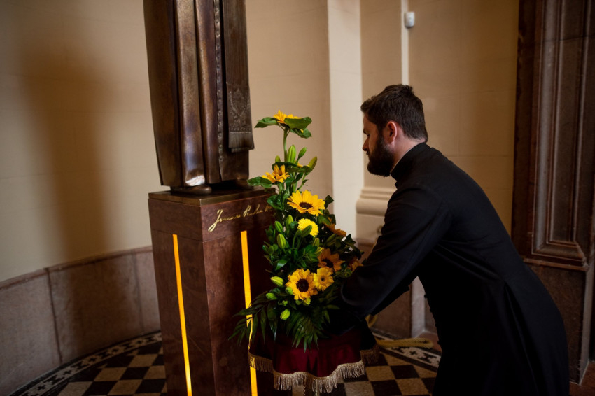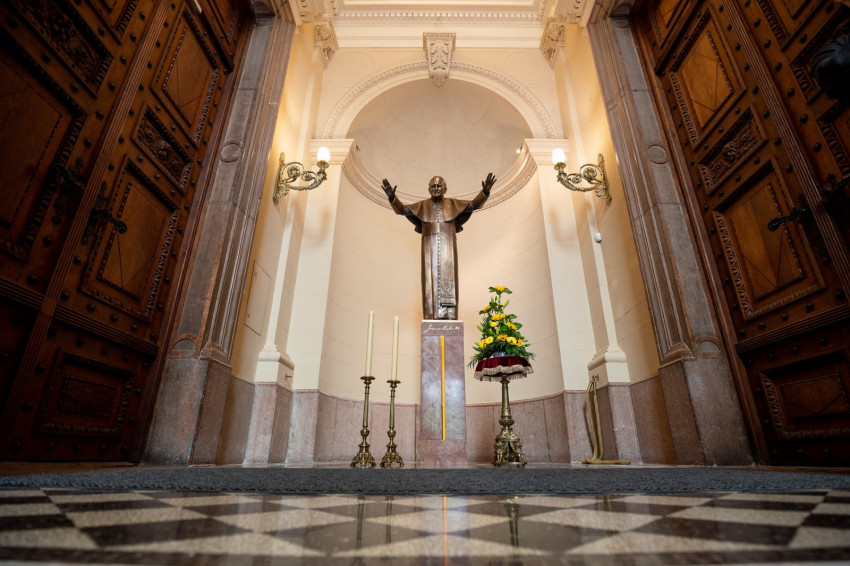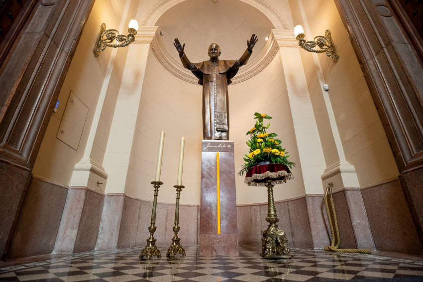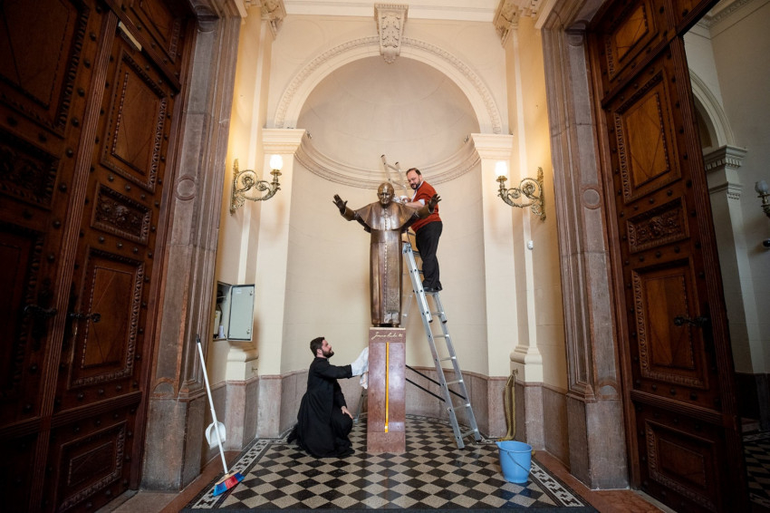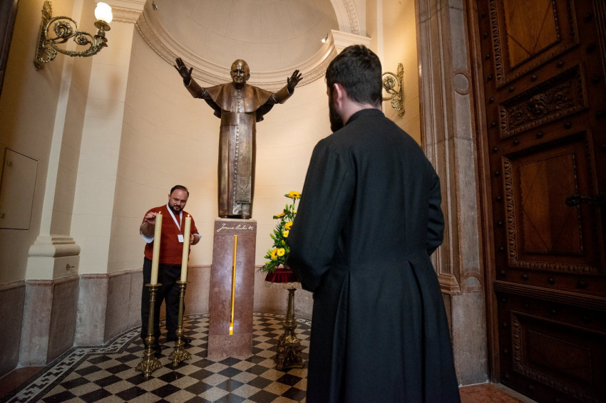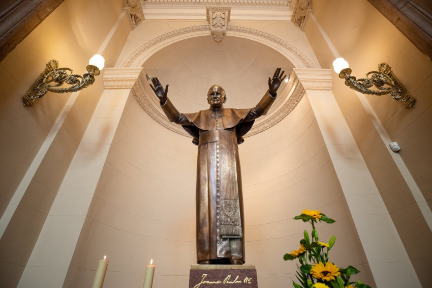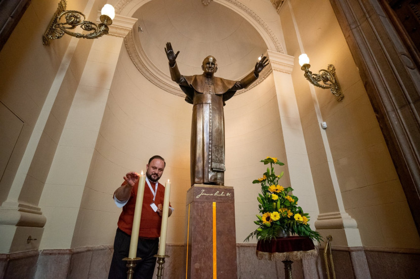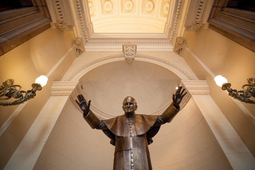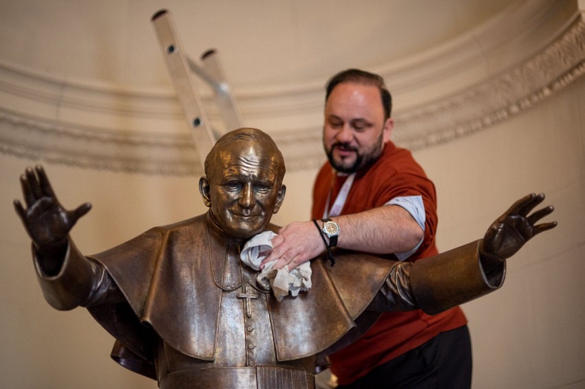 Éppen száz éve, 1920. május 18-án született Szent II. János Pál, aki 1978 és 2005 között a 264. római pápaként ült Szent Péter trónján. Személyében első alkalommal látogatott katolikus egyházfő Magyarországra, hivatalos apostoli út keretében. 1991. augusztus 20-án felkereste a szobrának mostantól otthont adó székesegyházat is.