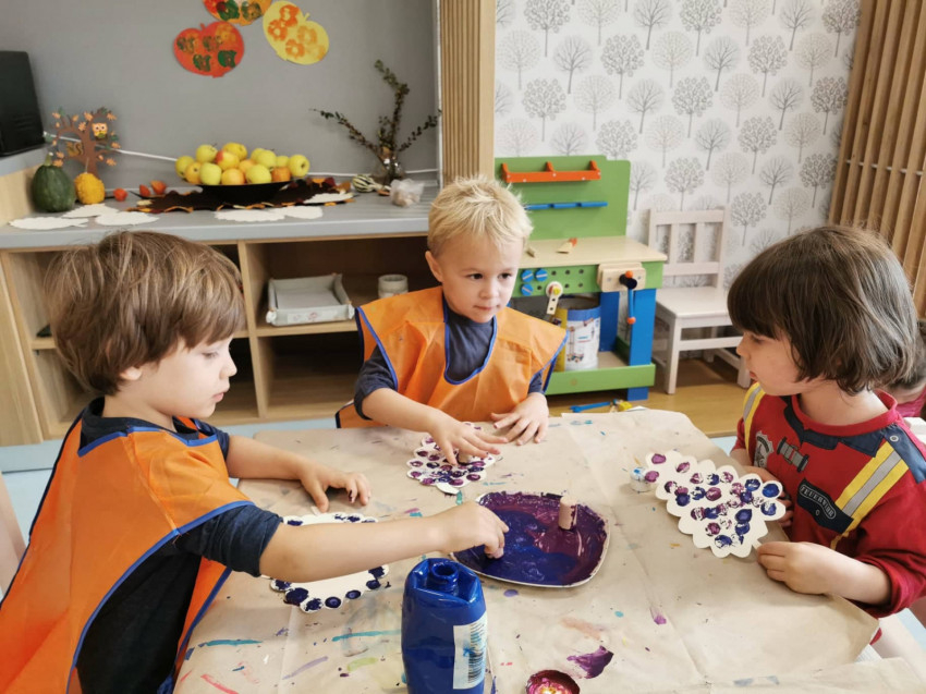 A kiscsoportosok dugónyomdával, festéssel készítettek szőlőfürtöket és színes leveleket. A középső és a nagycsoport padlókép alkotásával is feldolgozta az evangéliumi részletet. A Csillag csoport ellátogatott az egyházmegyei látogatóközpont kertjében lévő csodálatos szőlőtőhöz, amelynél a püspökségi kertész szeretettel mesélt a növényről való gondoskodás menetéről, és lemetszett hajtásokkal lepte meg a gyerekeket. Lelki percek keretében mind a négy csoport elkészítette a saját, keresztet formáló szőlőtőkéjét, melyet közösen az óvoda aulájában állítottak ki, ahol a szülők is megcsodálhatták. A tartalmas program zárásaként a családokat gyermekük munkájával és az evangéliumi idézettel ajándékozták meg.