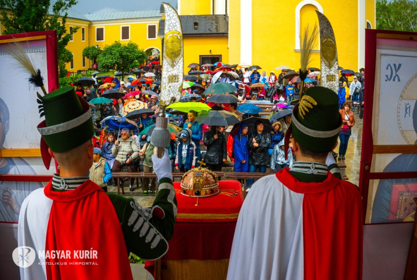 A Szent Liturgia előtt a koronaőrök az ikonosztáz előtt ünnepélyesen elhelyezték a Szent Koronát, melyet a szertartás végén körmenet keretében a Szűzanya kegyképe elé vittek át, ahol az érdeklődők vasárnap délig tekinthették meg.
