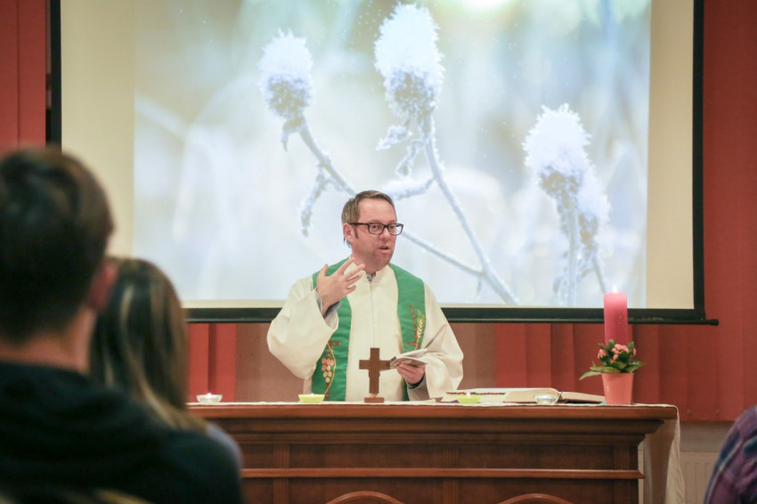 Simon Attila püspöki titkár, ifjúsági és ministránslelkész mutatott be szentmisét a találkozón. Kérte a fiatalokat, hogy Krisztus arcának tündöklő fényét sugározzák mindenütt, ahol jelen vannak.
