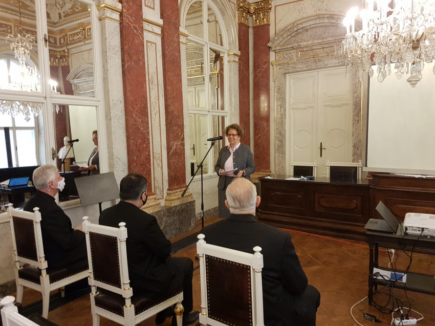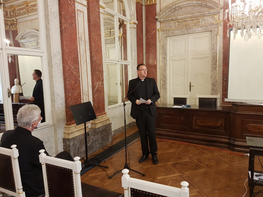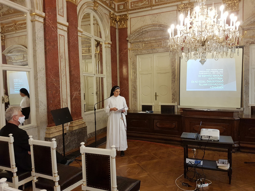 Ternyák Csaba egri érsek távolról, videokonferencia formájában tartotta meg előadását A katolikus köznevelési rendszer bővülésével járó kihívások címmel. Őt követte Kuminetz Géza, a PPKE rektora A katolikus egyetem küldetéséről szóló előadásával. Ezután Frankó Tamás, az Esztergomi Hittudományi Főiskola rektora tartott előadást A hittudományi főiskolák működésének kánonjogi és állami jogi keretei címmel, majd Nagy Éva Benedikta OP doktoranda Az egyházi iskolák identitása és az ezzel összefüggő állami egyházjogi kérdések területét mutatta be.
