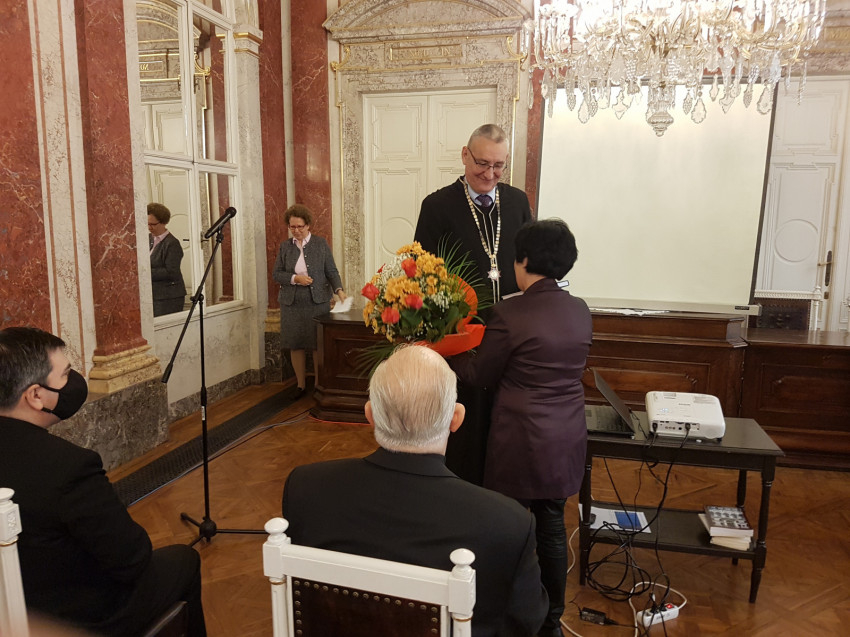Miután Szabó Péter, a Kánonjogi Posztgraduális Intézet (KJPI) intézetvezetője átadta a végzett hallgatóknak a diplomákat, sor került a Hársfai Katalin professzor asszony tiszteletére kiadott Ratio Intellegendi Et Ordo Vivendi című laudációs kötet bemutatására, melyben a professzor asszony kollégái és volt hallgatói által írt tanulmányok jelentek meg. El Beheiri Nadja professzor asszony röviden ismertette Hársfai Katalin szakmai életútját, majd Erdő Péter bíboros gratulációja után következtek a szakmai előadások.