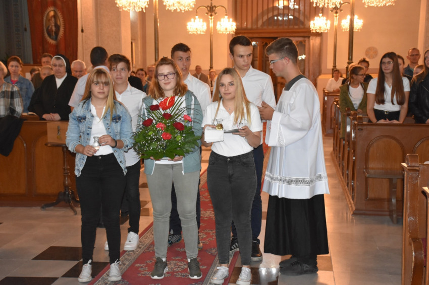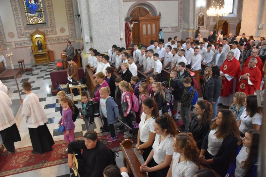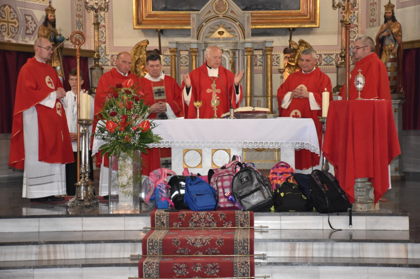Az általános iskolások hitoktatójukkal, Szabó Rozália Mária Cecília nővérrel és az elsősök tanítójával, Csordás Hajnalkával vonultak be a székesegyházba és magukkal hozták első iskolatáskáikat is, amelyeket a főpásztor a szentmise keretében megáldott. Nagy öröm volt, hogy a különleges nevelési igényű hittanosok is eljöttek a szentmisére szüleikkel és tanítójukkal, Kovács Irénnel. A szentmise olvasmányait és a könyörgéseket a helyi fiúkollégium, illetve a lánykollégium növendékei olvasták, és ők vitték az oltárhoz az adományokat is.