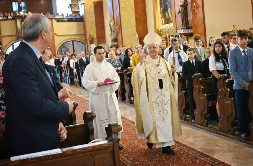 Az ünnepség hálaadó szentmisével kezdődött, melynek főcelebránsa, Ternyák Csaba egri érsek a társadalom, a világ szabályait, előírásait Jézus parancsaival állította párhuzamba. Mint mondta, a mai világban az emberek többsége autonómiára törekszik és nem akar a törvényeknek, előírásoknak megfelelni. Talán még a keresztények is válogatnak Jézus tanításai között, és csak azokat próbálják követni, amelyek számukra szimpatikusak. Rámutatott, hogy az ószövetségi törvény 613 előírást tartalmazott, amelyet a zsidóknak meg kellett tartaniuk, és 365 tilalmat kellett figyelembe kellett venniük életük során. Jézus azért jött, hogy ezeket tökéletesítse.