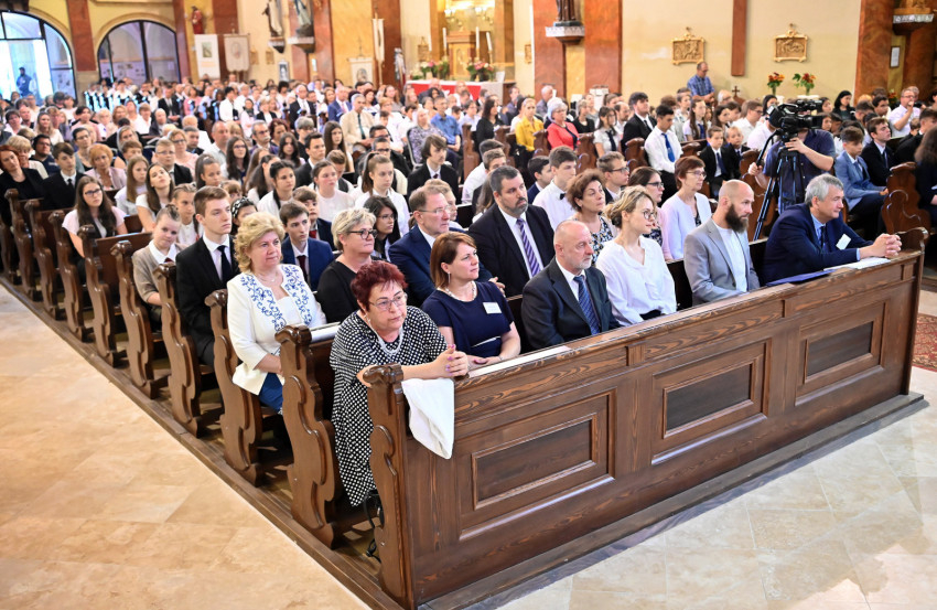 Az idei tanév mottója az volt, hogy „Péter hitével tekintsünk Krisztusra”. Mi Péter hitével akarunk rá tekinteni, és el akarjuk ismerni, hogy ő a mi Urunk és Istenünk – hangsúlyozta az érsek. Ternyák Csaba a jelen levő, az iskolájukban a legjobban teljesítő, legeredményesebb diákokhoz szólt ezután: „...ti törekedtek a jóra, számotokra fontos Jézus Krisztus barátsága is. Tanuljátok meg azt, hogy Péter szemével tekintsetek Jézusra, és hogyha bármi történik is veletek az életben, soha ne feledjétek, hogy ő mindig vár benneteket.