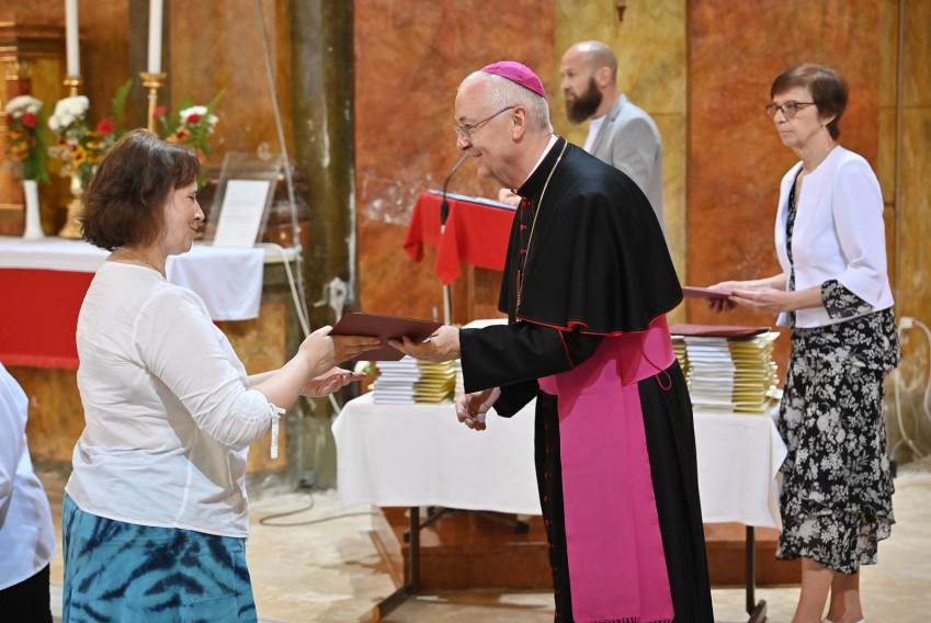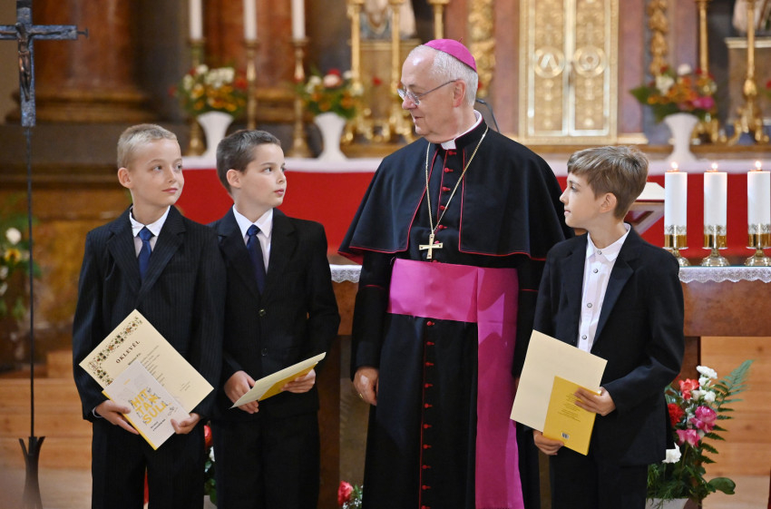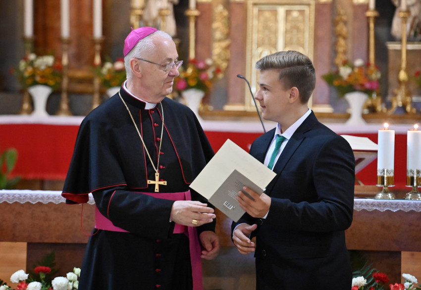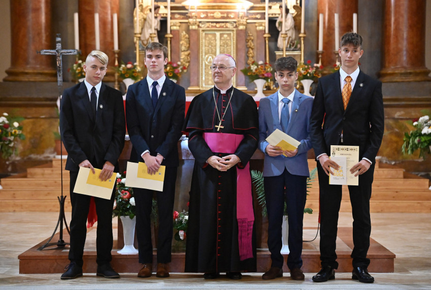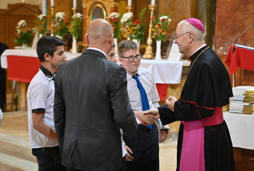 Az ünnepség végén a főpásztor oklevél- és könyvjutalomban részesítette a tanévben kiemelkedő teljesítményt nyújtó diákokat.