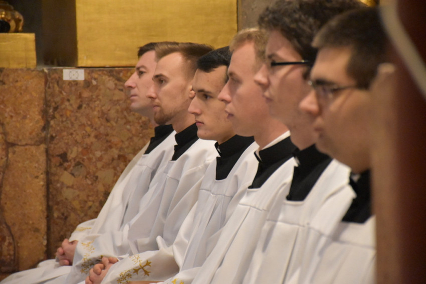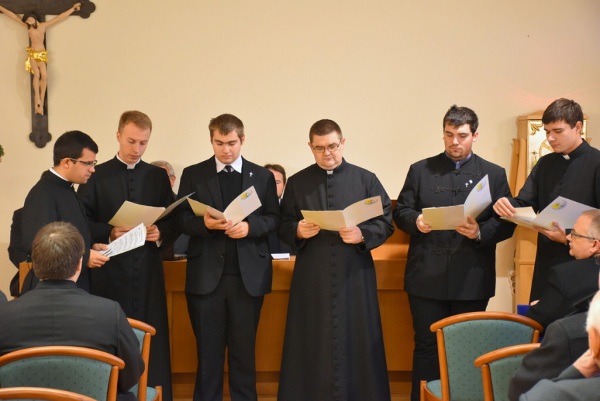 A szentmise után a hittudományi főiskola dísztermében folytatódott a tanulmányi nap. A megjelenteket Veres András püspök, valamint Reisner Ferenc rektor, majd Kálmán Imre prefektus köszöntötte.