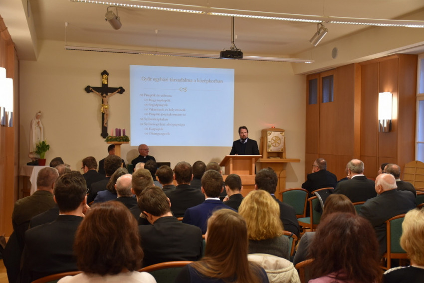 Császár István szombathelyi általános püspöki helynök Brenner János boldoggáavatási eljárásának menetéről, Nemes Gábor, a Győri Egyházmegyei Levéltár főlevéltárosa pedig a késő középkori Győr szerzetesközösségeiről tartott előadást.