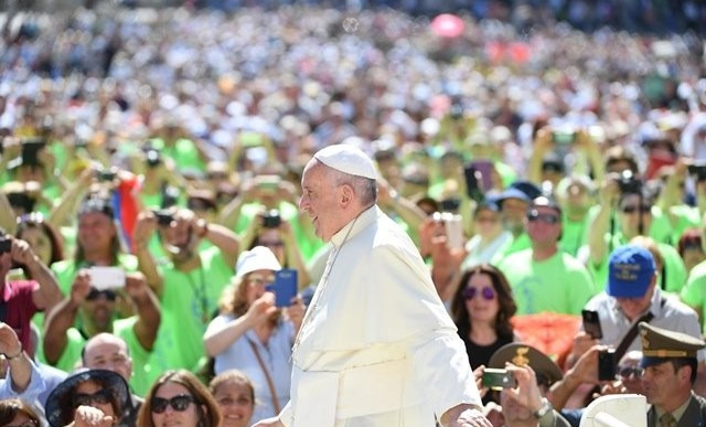 Kedves testvéreim, milyen sokszor érezzük mi is egy olyan változtatás szükségességét, amely egész lényünket átfogja! Hányszor mondjuk magunkban: „Változtatnom kell, nem folytathatom így tovább… Életemnek ezen az úton nincs gyümölcse, hasztalan az életem, így nem leszek boldog.” Milyen sokszor vannak ilyen gondolataink, milyen sokszor…! Jézus pedig, aki ott áll mellettünk, kinyújtja felénk a kezét: „Jöjj, jöjj hozzám! Én majd elvégzem ezt a munkát: megváltoztatom a szívedet, megváltoztatom az életedet, én boldoggá teszlek!” A kérdés csak az, hogy mi hiszünk-e ebben, vagy nem. Hiszünk, vagy nem? Mit gondoltok: hisztek ebben, vagy nem? Halkabban tapsoljatok, és hangosabban kiáltsátok: hisztek-e ebben, vagy nem? [Az emberek: Igen!] Így már jó! A velünk lévő Jézus arra hív, hogy változtassuk meg az életünket. Szentlelkével ő az, aki elülteti bennünk a vágyat, hogy változtassunk az életünkön és egy kicsit jobbak legyünk. Kövessük hát Jézusnak ezt a hívását, ne álljunk neki ellen, mert csak akkor találunk rá az igazi életre, az igazi örömre, ha megnyílunk az ő irgalmassága előtt. Nekünk csak ki kell tárnunk a kaput, és ő elintéz minden mást! Ő csinál mindent, nekünk viszont ki kell nyitnunk a szívünket, hogy ő meg tudjon gyógytani minket és új lendületet tudjon adni nekünk. Biztosíthatlak benneteket, hogy így boldogabbak leszünk! Köszönöm, hogy meghallgattatok!