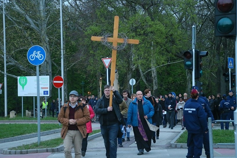 Az idei szegedi városi keresztúton minden állomáson más és más közösség vezette az imádságot: a páli szeretethimnusz mondatainak segítségével elmélkedtek.