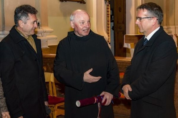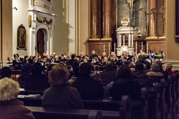 A díszpolgári cím átadásának helyszínén, a Szent Kereszt-templomban a város egyesített kórusa adott koncertet.
