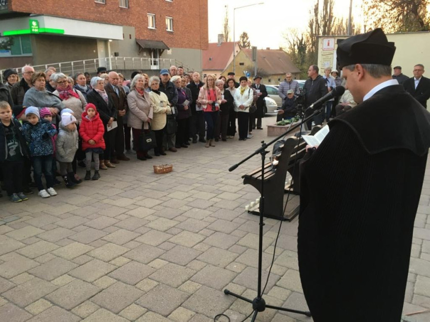 A köztéri alkotást megáldotta Kovács Csaba Albert katolikus plébános, Szabó Előd református lelkész és Frankó Mátyás evangélikus lelkész. Az evangélikus lelkipásztor az irgalmas szamaritánus történetéről elmélkedve azt mondta, azt a kérdést kell feltennünk, kinek válhatunk mi a felebarátjává. „Úgy tűnik, mintha Krisztus aludna, de ő álmában is cselekszik. Minket álmodik, és azt akarja, hogy a mi életünk krisztusi legyen. Amikor elmegyünk emellett a szobor mellett, akkor gondoljunk arra, hogy Isten az élet Istene, és a szava teremtő hatalom. Amikor Krisztus a szívünkben teremt, akkor együtt munkálkodó barátokká válhatunk. Isten munkatársaivá kell válnunk.”