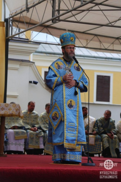 A szombati forróságot kisöprő vasárnapi széllel, a változás szelével kezdődött a püspöki Szent Liturgia, amelyben együtt imádkozott Kocsis Fülöp hajdúdorogi érsek-metropolita, Orosz Atanáz miskolci megyéspüspök és Szocska Ábel nyíregyházi apostoli kormányzó megannyi paptársukkal és sokezer hívővel. „Megérkeztünk. A megérkezés igazából hazaérkezés – mondta ünnepi beszédében Orosz Atanáz –, még a hegynél is magasabbra tekintünk ma, hiszen a Magasságbeli Isten országát szemléljük, ahol az Istenszülő Szűz elfoglalta a trónját, amelyet szent Fia már régóta készítgetett. Az Istenszülő elhunytának, elszenderedésének napján nem halálos gyászt tartunk […], mert jobblétre szenderült át, […] hazaérkezett. Mi, földi zarándokok szintén szeretnénk hazaérkezni. Mai zarándoklatunk, búcsújárásunk akkor lesz értékes, ha felkészít minket erre a végső hazaérkezésre, ha nemcsak az időjárás-változással jár együtt, hanem belső átalakulással is.” „A Szentlélek szele viszi előre vitorlásainkat, hogy célba érjünk. […] Mély lélegzetet kell vennünk, a Szentlélek szelét magunkba fogadnunk és változtatnunk életünkön” – hangsúlyozta.