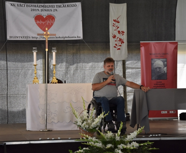Ezután a közös ebédre és szabad programokra került sor, majd ismét egy mély tanúságtételt hallgathattak meg a résztvevők Holló András kertészmérnök, teológus, kerekesszékes tánctanártól. Saját életpéldáján keresztül mesélt Istennel való kapcsolatáról, annak elmélyüléséről és más alapokra helyezéséről, arról, hogy milyen változásokat hozott balesete. Hangsúlyozta: keresztény emberként egymást kell segítenünk az Istennel való kapcsolat felé. Vallja, ha valakinek istenélménye van, akkor őt meg kell erősíteni, mert az istentapasztalat nagy ajándék.