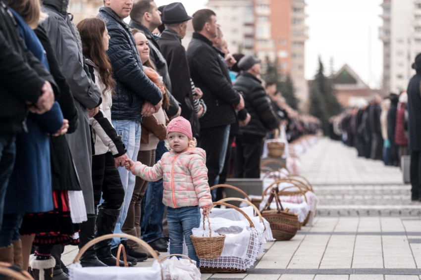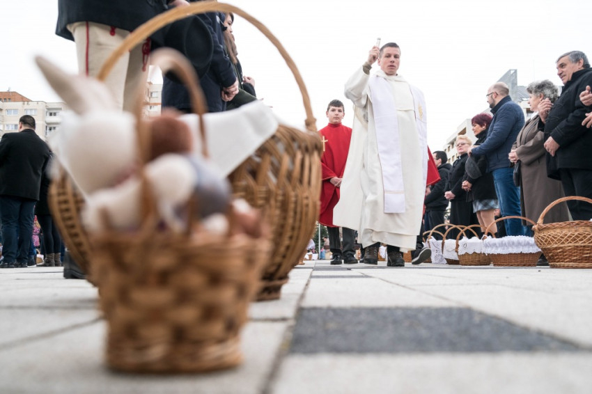 Mint minden évben, idén is több százan sorakoztak a húsvétvasárnapi ételszentelésre várva Csíkszereda főterén április 1-jén.