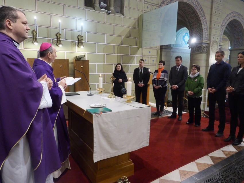 A prédikáció után imádkoztak a katekumenekért, majd megkezdődött a szertartás. „Most Egyházunk könyörög érettetek, könyörög azért, hogy a döntés, ami ott van a szívetekben az meg ne gyengüljön, hogy vágyaitok tisztuljanak és hogy a megtisztult vágyakban egyértelműen az Istent fedezzétek fel.” A katekumenek keresztet kaptak a főpásztortól, ezzel együtt is meghívva őket a Krisztusi életre – „Vedd Krisztus keresztjét”.