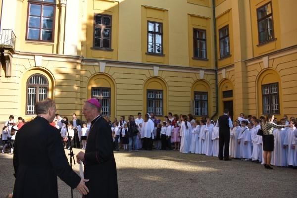 Varga László székesegyházi karnagy, a Karolina Katolikus Általános Iskola Székesegyházi Kórusiskola és Alapfokú Művészeti Iskola művészeti vezetője, a kántorképző igazgatója arra mutatott rá, hogy a beöltözéssel kapott ruhának nem csupán esztétikai értéke van. A szülőkkel összefogva a gyermekeket arra tanítják, hogy a fehér ruhával Jézus ruháját öltik magukra, a kereszttel pedig Jézus keresztjét veszik szívükre. Ez abban erősíti őket, hogy személyesen Krisztust öltsék mindig magukra, vele azonosulva pedig legyenek áldozatkészek a szeretetben.
