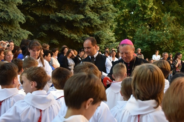 A harmadik osztályos kórusiskolások hűségük jeléül Krisztus keresztjét kapták. Az ünnepségen vehették át okleveleiket a Váci Egyházmegyei Kántorképző Tanfolyam végzősei is.