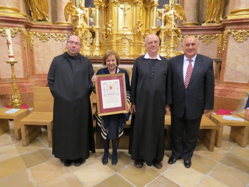 A szentmise végén Sárai-Szabó Kelemen perjel és Tóth Konstantin átadták a pápai áldást tartalmazó elismerő oklevelet Szalayné Kürthy Juditnak, a tantestület tagjának. A tanárnő több évtizeden keresztül komoly szakmai tudással és magas színvonalon oktatta a bencés diákokat, továbbá önzetlen segítséget nyújtott az egyházközségek és a karitatív szervezetek számára is.