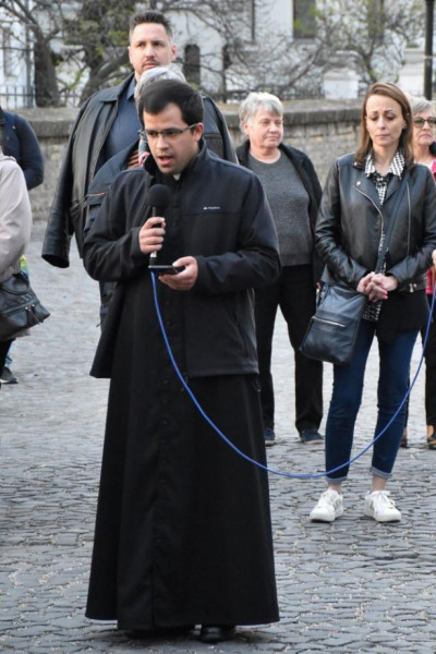 A keresztút végén a Lehullott a Jézus vére kezdetű moldvai csángó népéneket énekelte Horváth Csaba papnövendék.