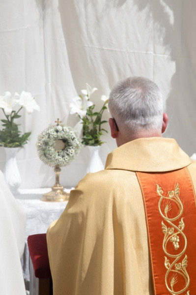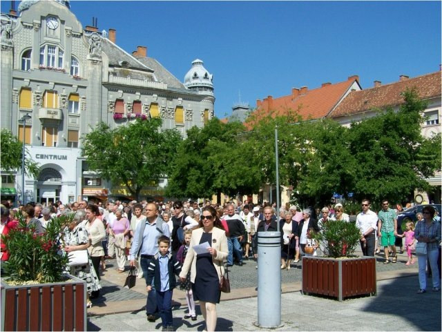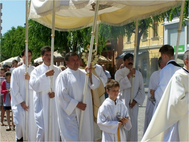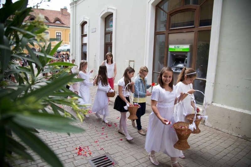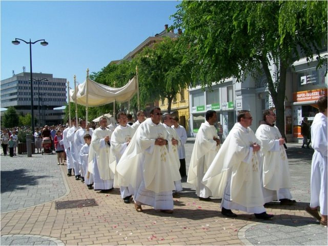A szentmisét követően került sor a körmenetre. Az oltárokat az oladiak, a ferences templom közössége, a szőllősi Jézus Szíve plébánia tagjai és a székesegyháziak díszítették fel.