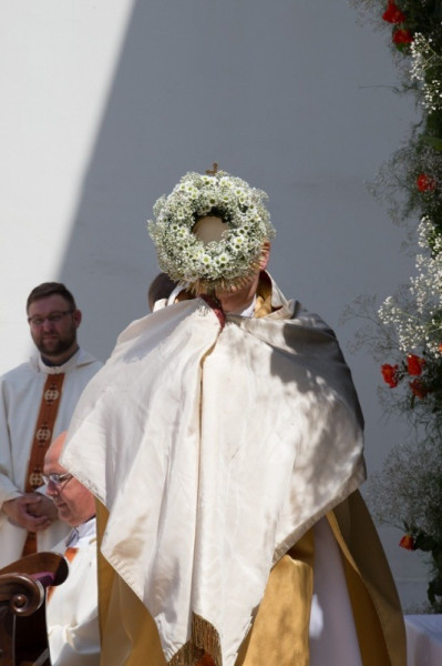 A püspök az ünnep jelentőségéről elmondta: úrnapján különleges tisztelettel fordulunk az Oltáriszentség felé; így hívjuk fel a figyelmet arra, hogy Krisztust kell hordoznunk, őrá kell hallgatnunk, hozzá kell szólnunk. Ő az, akitől vigaszt és reményt kapunk, amelyet el kell vinnünk másoknak is. Mert Krisztus ránk bízta magát. Amikor kimegyünk a városba a körmenettel, arról teszünk tanúságot, hogy Krisztus szeretete jelen van az életünkben.