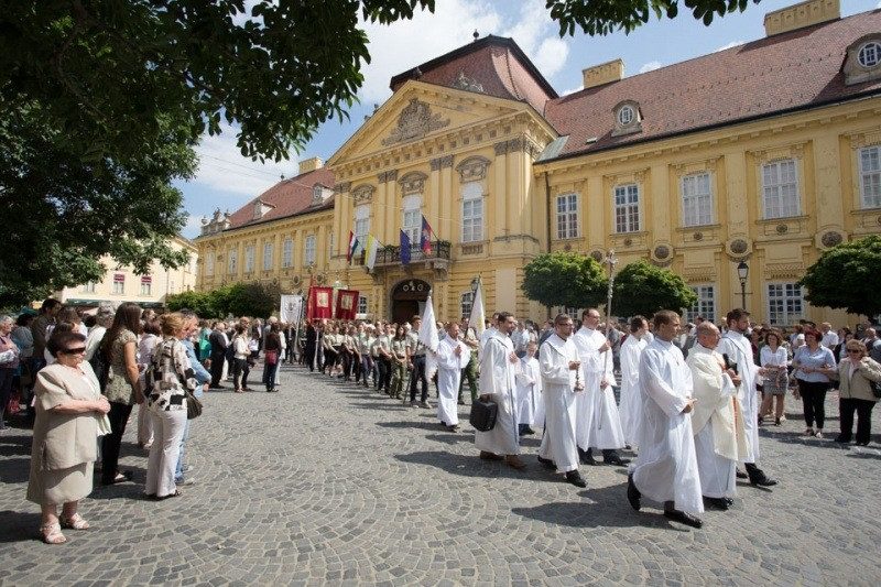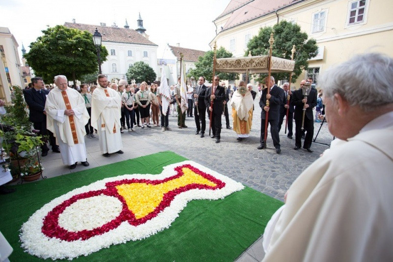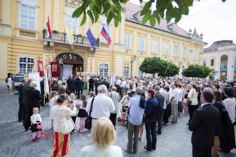 Pápai Lajos győri megyéspüspök este 6 órakor mutatott be ünnepi szentmisét Németh Gyula pápai prelátus, nagypréposttal, valamint Marics Istvánnal, a győri Nagyboldogasszony-székesegyház plébánosával Krisztus Szent Testének és Vérének főünnepén. A szertartás végén a hívek a székesegyház körül kísérték a papság körmenetét. A liturgián a székesegyház Palestrina kórusa teljesített zenei szolgálatot.