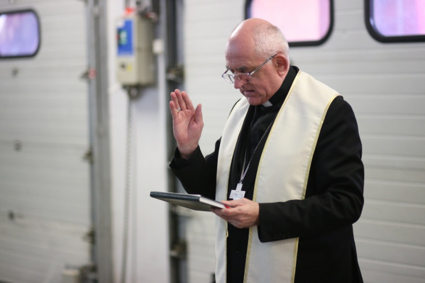 Varga László püspök e szavakkal áldotta meg a tűzoltóság épületét: „Urunk és Istenünk, hálát adunk Neked, hogy vannak, akik akár életük kockáztatásával is készek segíteni bajbajutott embertársainkon. Ezek közé tartoznak a tűzoltók és a katasztrófavédelem munkatársai. Kérünk, áldd meg ezt az épületet, lakjanak itt a békesség és az egység angyalai. Áldd meg, Istenünk, a katasztrófavédelem minden dolgozóját, akik önfeláldozó szolgálatukkal védenek bennünket és értékeinket. Áldd meg családtagjaikat és szeretteiket. Szent Kristóf közbenjárására óvjon meg benneteket minden bajtól a mi Urunk, Istenünk, akkor is, amikor katasztrófa esetén végzitek munkátokat, vagy mikor kiképzésen, készenléti állapotban vagytok.”
