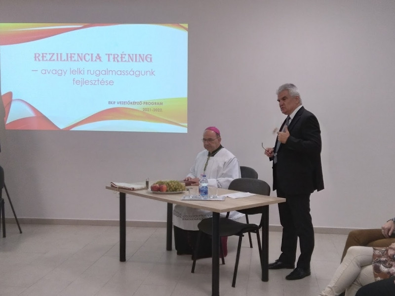 Selmeczi Zoltán ismertette a vezetőképző célját: az egyházmegye területén lévő óvodák és iskolák intézményvezetőinek a vezetői kompetenciáik fejlesztésén keresztül szeretnének segítséget nyújtani a vezetői szerep örömteli és tudatos megéléséhez. A kétéves program a tanévhez igazodik; az első év három képzésből áll.