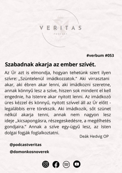 A domonkos rendet az Ige szolgálatára és hirdetésére alapították meg több mint 800 éve. A szó emberei, az ige közvetítői ők. A rend Veritas elnevezésű podcastja is e szándékkal született.