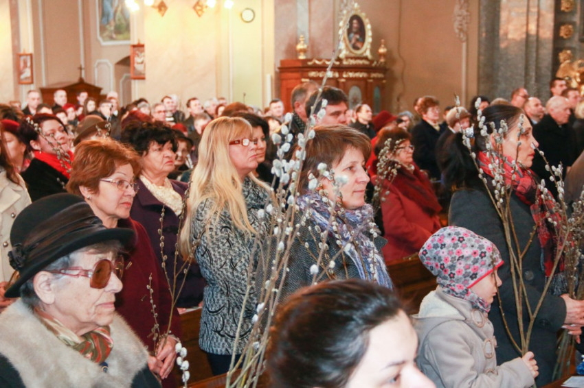 A szatmárnémeti székesegyházban Schönberger Jenő megyéspüspök mutatta be a legszentebb áldozatot. A szentmise elején asszisztenciájával a bejáratnál összegyűjtött barkához vonult, ahol megáldotta azt.