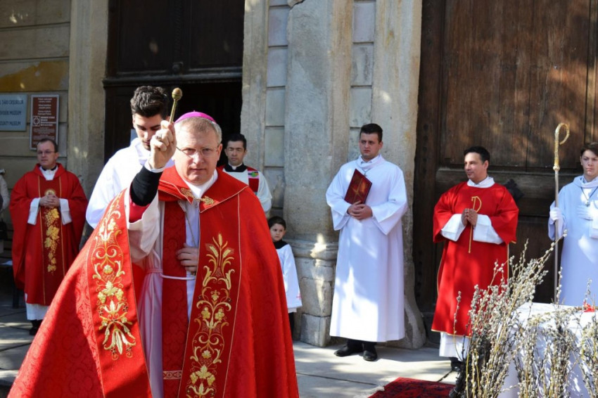 A nagyváradi püspöki palota kapuja előtt áldotta meg Böcskei László megyéspüspök a virágvasárnapi barkákat. Ezután Urunk, Jézus Jeruzsálembe való bevonulásáról, királyként való tiszteletéről megemlékezve a hívek a kezükben a megáldott barkákkal a székesegyházba vonultak, liturgikus énekek kíséretében.