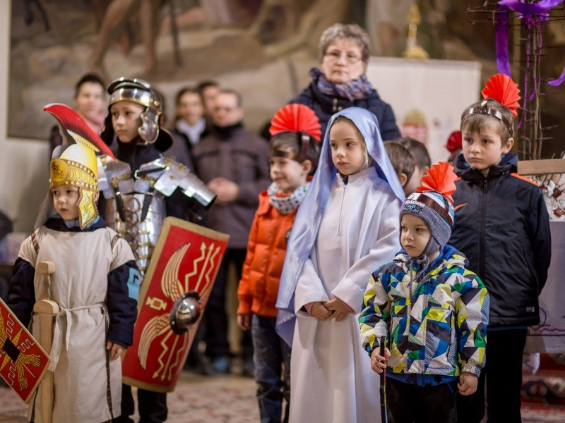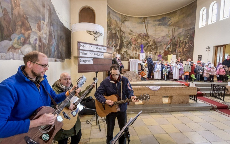 Az óvónők kérésére a szülők a családok életéről szóló elmélkedésekkel kísérték Krisztust a fájdalmak útján, mialatt a gyermekek Jézus szenvedéstörténetének szereplőit jelenítették meg szavak nélkül, pantomimszerűen.