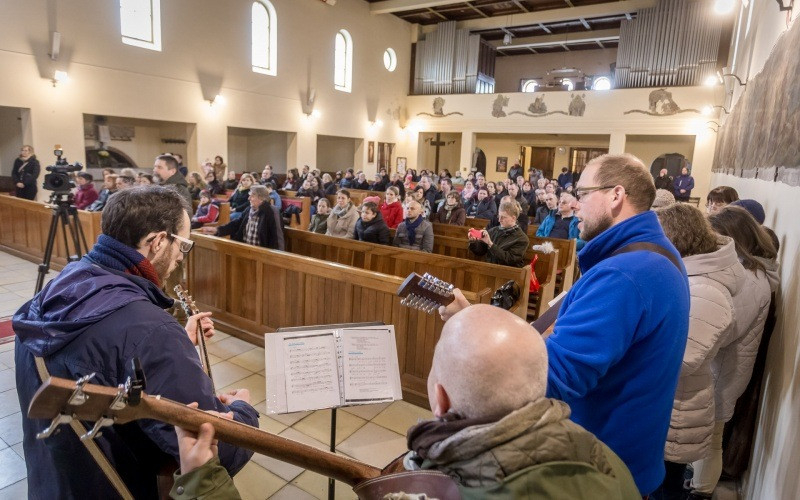 Az egyes stációkat gitáros énekekkel kísérte Virág György Barnabás együttesével. A családok keresztútja Spányi Antal megyéspüspök imájával és áldásával zárult.