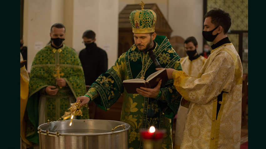 Vízkereszt ünnepének vigíliáján a görögkatolikus szertartásrend a nagyvecsernye szertartását írja elő Nagy Szent Bazil liturgiájával, melyet az egyházmegye székesegyházában Orosz Atanáz püspök vezetett.