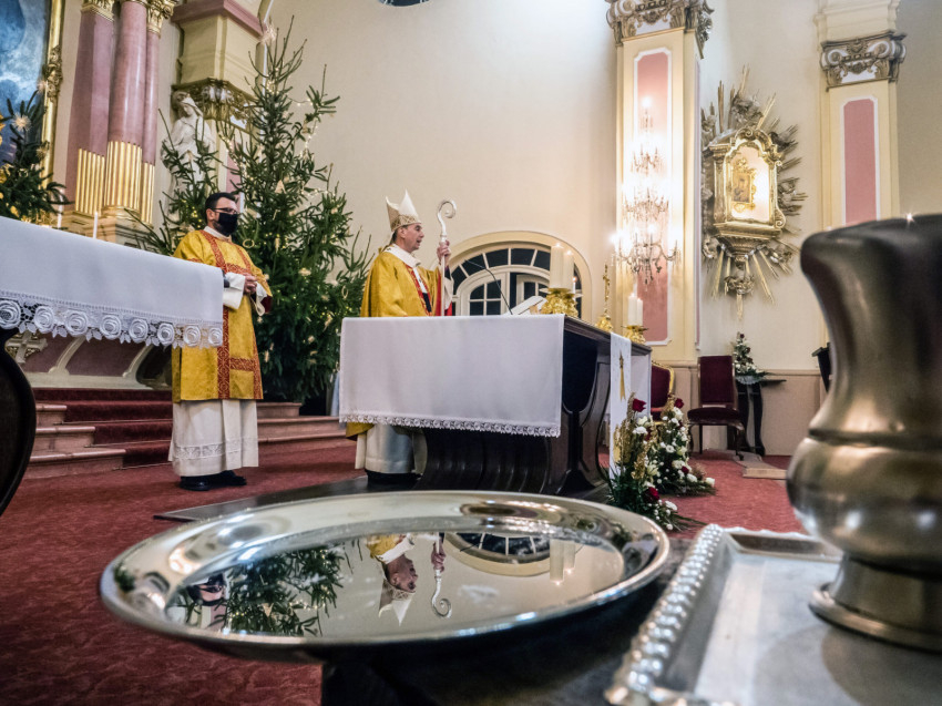 Marton Zsolt váci megyéspüspök a váci piarista templomban mutatott be szentmisét a karácsonyi ünnepkör zárásaként.