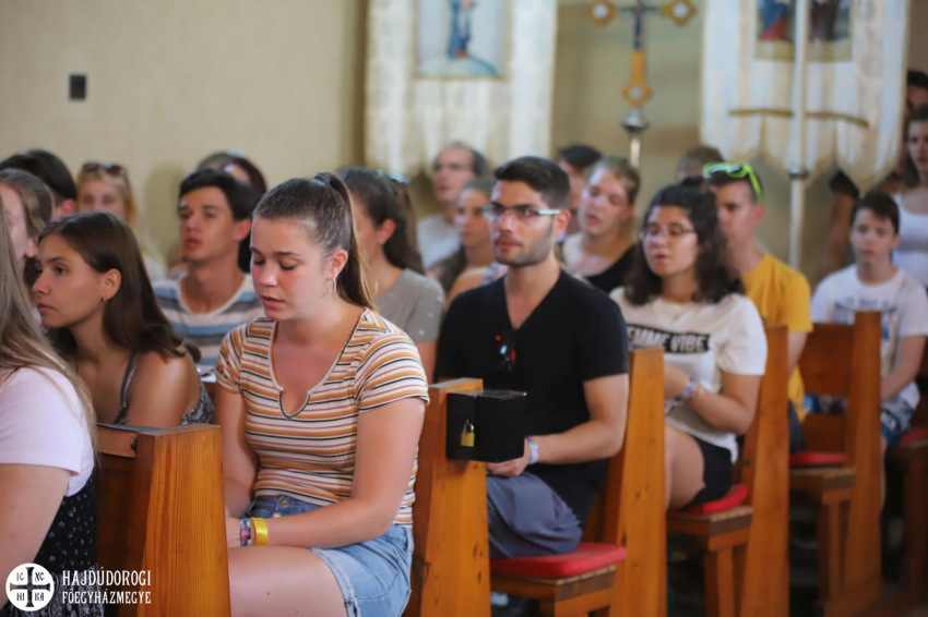 A nyíregyházi püspök azt tanácsolta a fiataloknak, hogy legyenek tudatában annak, hogy elsősorban nem a társakkal zarándokolnak, hanem Jézussal. Az emmauszi tanítványok, miután felismerték Jézust a kenyértörésben, már nem akartak továbbmenekülni, boldogan tértek vissza Jeruzsálembe. A főpásztor végezetül azt kívánta a fiataloknak, hogy törekedjenek ezen a héten lelki kincseket gyűjteni, azokat nem elpazarolni, és igyekezzenek lelki emberként, Krisztussal megérkezni Máriapócsra. Az első nap táncházzal és ismerkedéssel zárult.