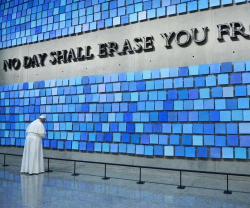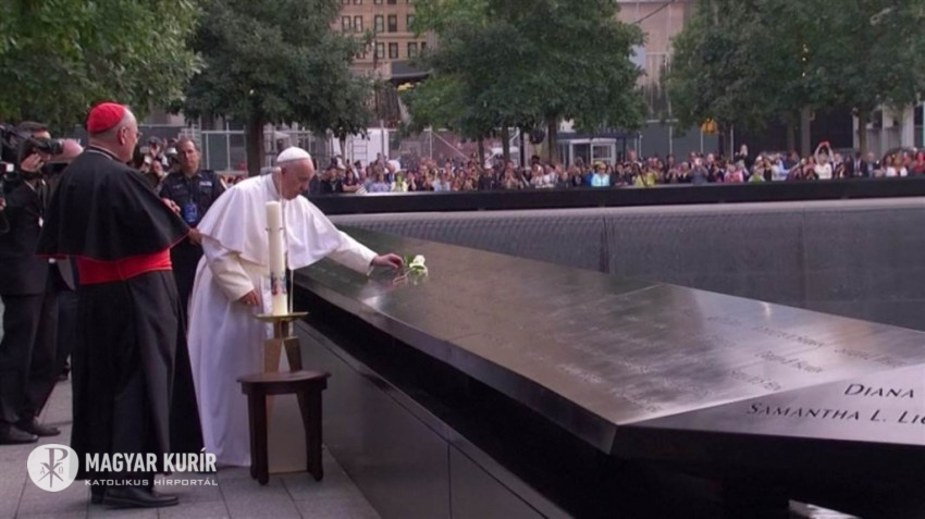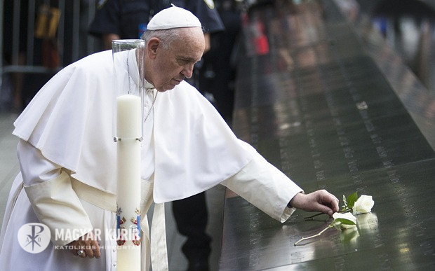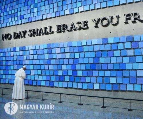 Ferenc pápa imája a Ground Zero emlékhelyen