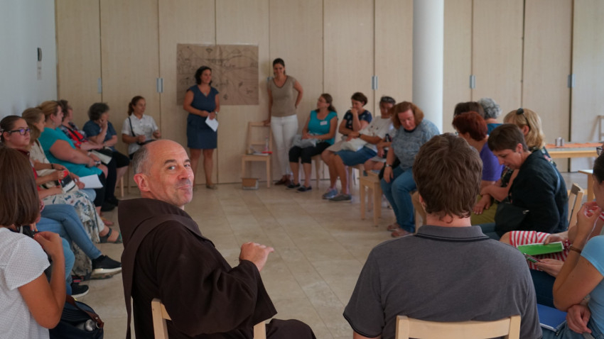 Szerda reggel még borús, esős hangulat uralkodott a mátraverebély-szentkúti kegyhely völgyében. Úgy tűnt, ez senki kedvét nem szegte: a megérkezést követően hamar vidám beszélgetések kezdődtek a résztvevők között. „Jó érzés ide visszatérni és találkozni a kollégákkal. Hálás vagyok, hogy együtt lehetünk, és a lelkünkkel is foglalkozhatunk az éppen aktuális fontos kérdések megvitatása mellett” – mondta egy jelen lévő tanár.