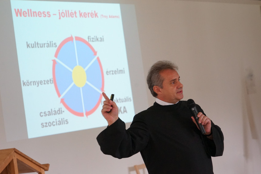 A második napot indító laudesen és szentmisén részt vett Papp Miklós atya is, aki később A pedagógus spiritualitása címmel tartott előadást.