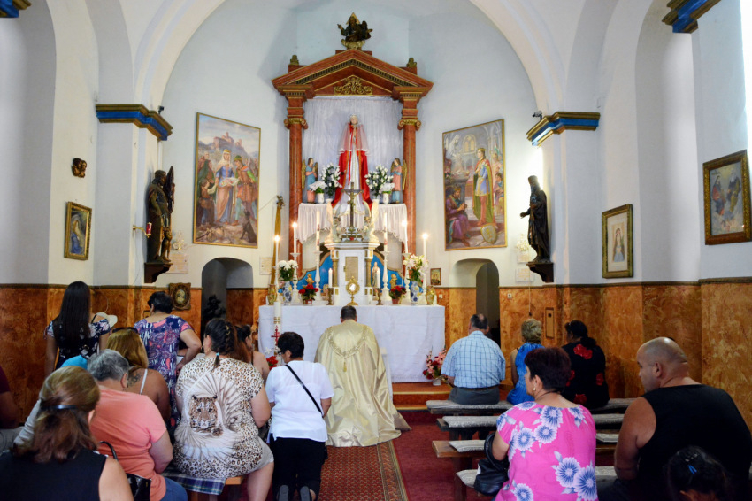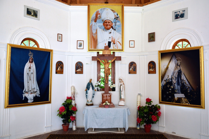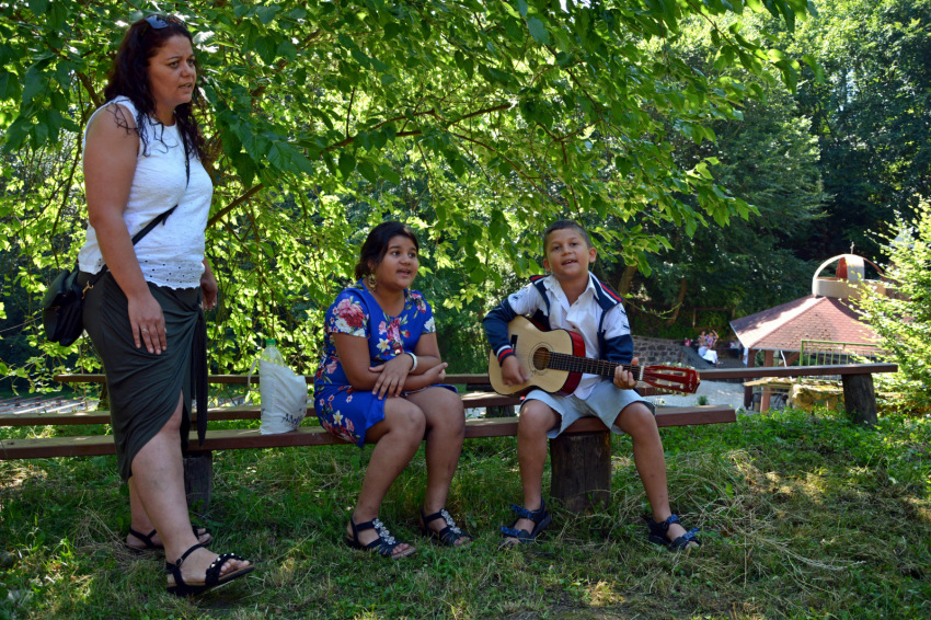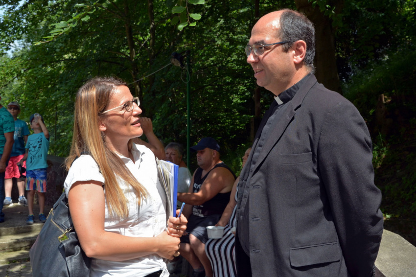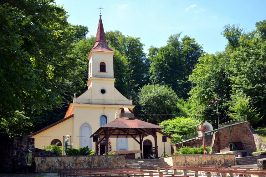 Az út utolsó szakasza mély völgybe ereszkedik, és még attól a tisztástól is lefelé kell mennünk, ahol leparkolunk. A cigány kápolna előtt egy fiú füvet nyír, egy úr a gazt szedegeti a kövek közül, bent pedig takarítanak, ezért csak bepillantani tudunk. A kegykápolnához vezető lépcső mellett valaki gitárt próbálgat. Kiderül, hogy egy kicsi fiú, de a gitárnak máris nagy mestere. A forrásnál többen palackokat töltenek, alig lehet odaférni. Nagyon ki vagyunk tikkadva, jólesik a hűs, tiszta, „természetazonos” víz. Nem sokkal később mégis azt olvassuk a faliújságon, hogy nem iható. Erről a zarándokok között kialakul egy kis vita. Nekünk nem lett bajunk tőle, ez biztos.