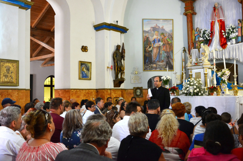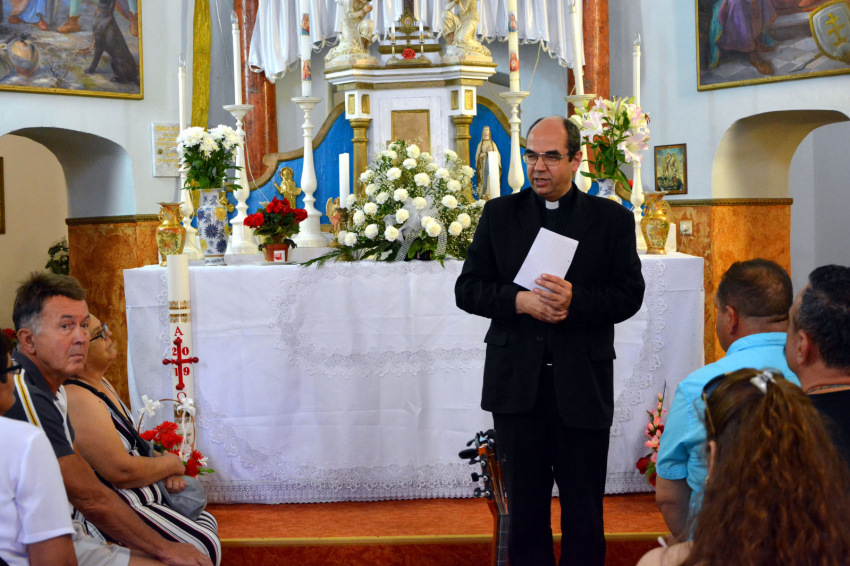 A mise első püspöki története egy afrikai kisfiúról szól, aki kétszer húsz kilométert gyalogolt, hogy kagylót vigyen ajándékba a tanító néninek. Arra a kérdésre pedig, hogy nem fáradt-e nagyon el, azt válaszolta: „A hosszú út része az ajándéknak.” Mi is így, hosszú út után vagyunk itt. És azért érkeztünk, hogy az égi édesanyánkat meglátogassuk. Hogy az Isten olyanná tegyen bennünket, mint Péter vagy a segítői voltak.