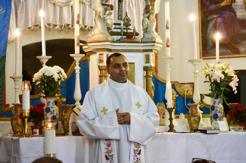 „A mai lelkinap a püspök úr érdeme. Reméljük, hogy sikerül hagyományt teremtenünk vele – mondja szerényen Holubák Attila, Aka, Ácsteszér, Csatka és Súr plébánosa ebéd közben. – Kegyhelyen szolgálni azzal jár, hogy sok testi-lelki bajról hall az ember, és ez néha egyáltalán nem könnyű, fájdalommal tölti el az embert. De szerencsére gyógyulásokról is beszámolnak a hívek, és itt most elsősorban lelki gyógyulásokra gondolok. A hálájukat is ki akarják fejezni, ennek jelei a Mária-szobor számára készíttetett ruhácskák. Még Kanadából is küldenek ilyeneket időnként.