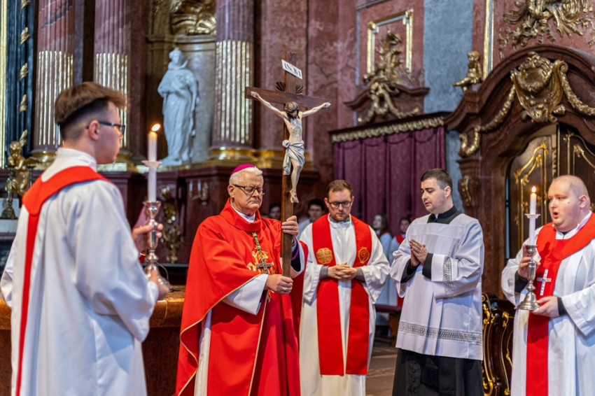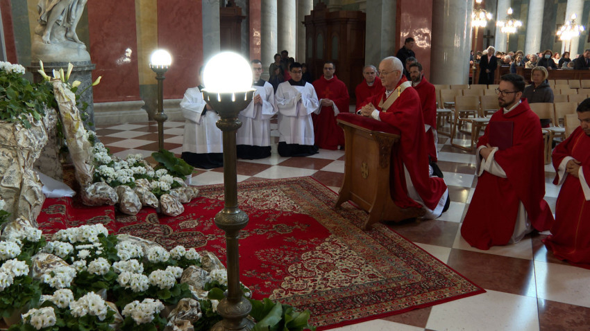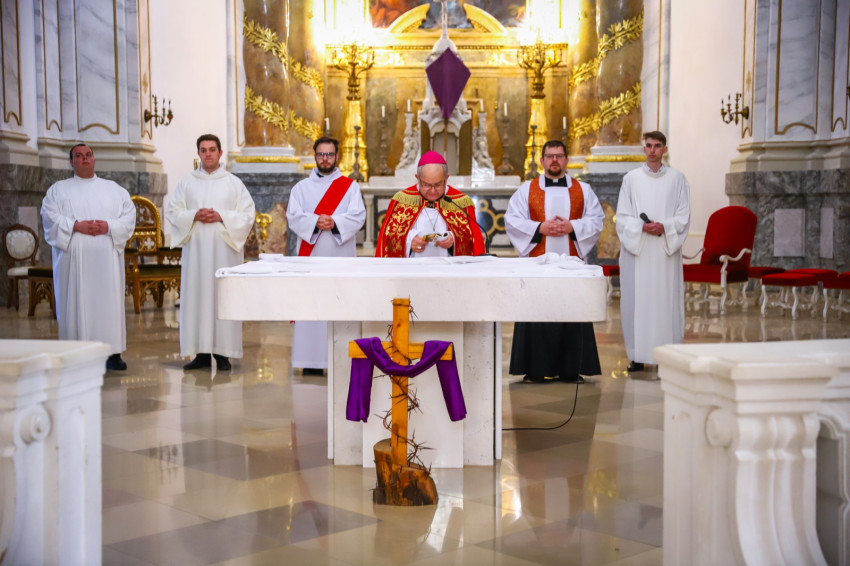 Keresztúti ájtatosságot vezetett a Nagyboldogasszony-főszékesegyházban Bábel Balázs érsek nagypénteken.