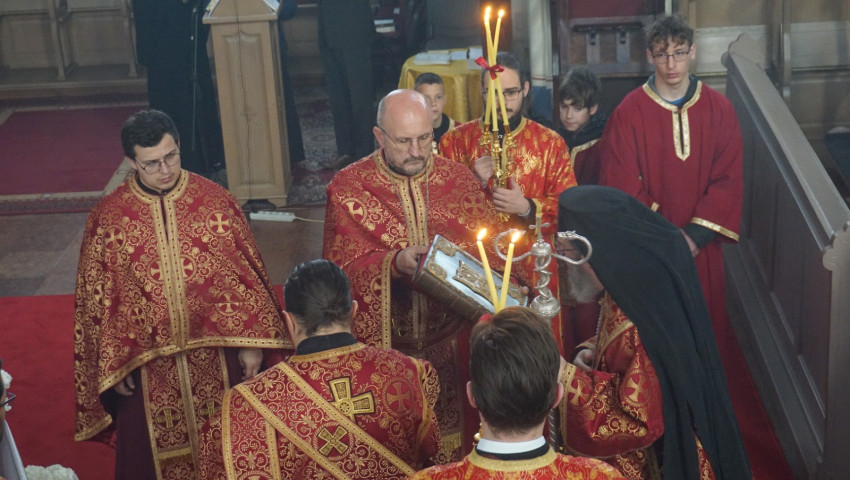 Nagypéntek Jézus kínszenvedésének, halálának és sírba tételének napján a hagyomány szerint ilyenkor nem végeznek Szent Liturgiát, mert maga Krisztus az áldozat a kereszt oltárán. Krisztust a hagyomány szerint a nap kilencedik órájában feszítették keresztre, ebben a délutáni órában kezdődött a sírbatételi nagyvecsernye szertartása a miskolci székesegyházban Orosz Atanáz püspök vezetésével.
