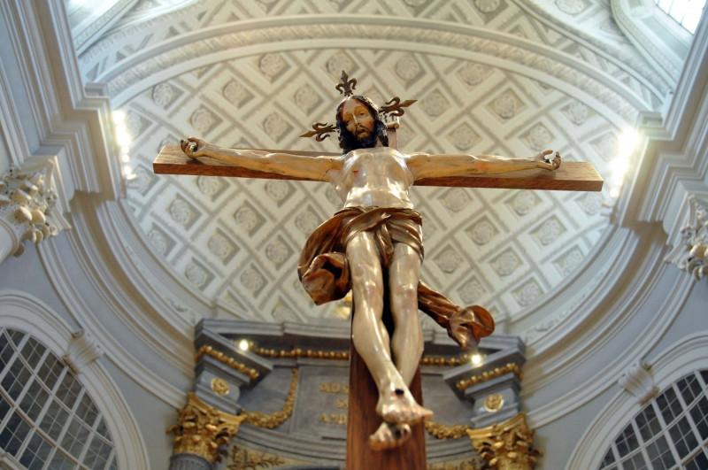 Isten dicsősége, annak ragyogása, amit az emberi szem nem képes elviselni, éppen a kereszten függő Krisztus arcán ragyog fel igazán. Itt mutatkozik meg Isten valódi nagysága, amelyet leginkább a fájdalmak férfijában szemlélhetünk, akiről Izajás próféta azt mondta: Nem volt sem szép, sem ékes, nem volt vonzó, megvetett volt, aki elől iszonyattal eltakarjuk arcunkat (vö. Iz 53,2–3).