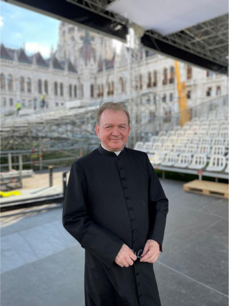 – Gazdagréten, a Szent Angyalok templomában nemrég volt már egy orgonás összpróbánk. Külön próbálunk hamarosan az Operaház Zenekarával az Eiffel Központban, és a teljes apparátussal is lesz egy helyszíni főpróbánk a Kossuth téren. A művek vezénylésében én is részt veszek; hadd említsem azonban elsősorban a társaimat, akik Sapszon Ferenc és Sapszon Borbála karnagyok, Ménessy Gergely karmester, egyetemi docens; Cziffra János, a salzburgi székesegyház emeritus karnagya, valamint Szili Zoltán karnagy, az OMCE társelnöke. Mindnyájunk szándéka szerint természetesen nem egy szabadtéri koncertet tartunk, hanem felemelő énekelt imádságot, liturgikus szolgálatot végzünk.
