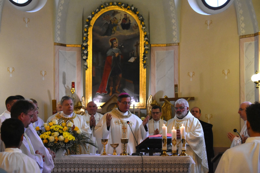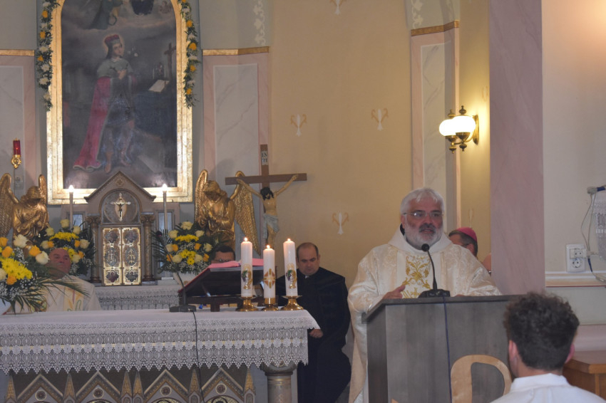 Az ünnepi szentmisét a jelenleg Kárpátalján, most Nevetlenfaluban szolgáló Bán Jónás OFM celebrálta: „Akik Istent szeretik, azoknak minden javukra válik – furcsa ezt mondani egy olyan ember ünnepén, aki tragikusan fiatalon halt meg, vagy ölték meg. Valószínűleg Szent Imre herceg halálakor édesapja, családja, de az egész magyarság inkább arra gondolhattak: jövő nélkül maradtunk, hiszen ő volt a trón várományosa. Szent István számára nem volt mindegy, kire marad a trón, az ország, ugyanakkor tudjuk azt is: számára és Imre fia számára fontos volt Isten, s Szent István értette, tudta, hogy Istennek az emberi történéseken túl más tervei is voltak az emberrel, hiszen Ő saját elhatározásából választotta ki őket. Akiket ugyanis eleve ismert, azokat eleve arra rendelte, hogy Fiának képmását öltsék magukra, így lesz Ő elsőszülött a sok testvér között” – fogalmazott.